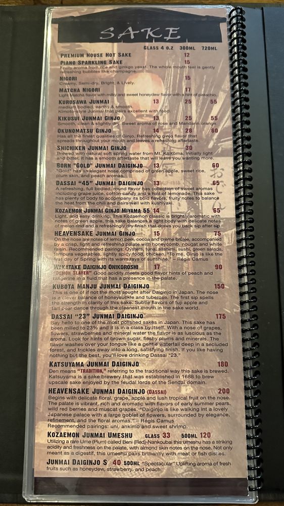Begins with delicate floral, grape, apple and lush tropical fruit on the nos. The palate is vibrant, rich and aromatic with flavors of early summer pears, wild red berries and muscat grapes. " Daiginjo is like walking in a lovely Japanese palace with a large goblet of flowers, surrounded by elegance, refinement and the floral aromas" - Rgis Camus. Recommended pairings: uni, ankimo and sweet shrimp